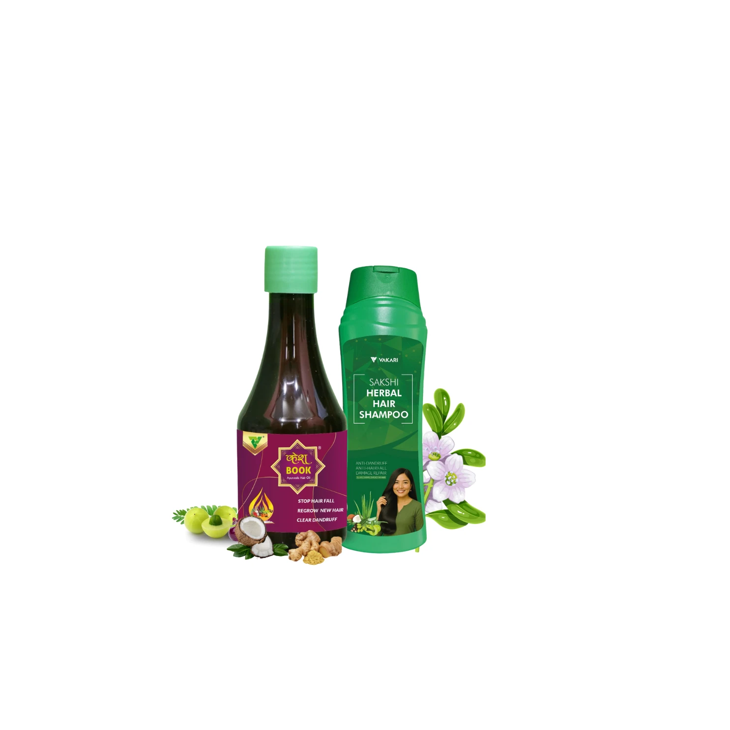 ๐น Kesh Book Hair Oil (200ML) โ Enriched with essential oils and herbal extracts to deeply nourish, reduce hair fall, and boost hair regrowth.๐น Sakshi Herbal Hair Shampoo 350ml โ Gently cleanses, strengthens hair follicles, and prevents breakage while keeping your hair smooth and shiny.